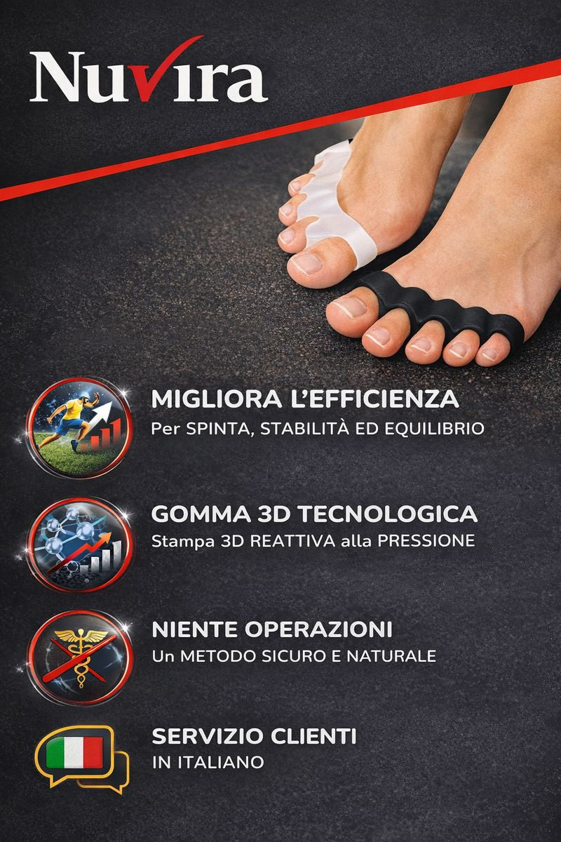 Vedi come Nuvira™ distanzia delicatamente le dita e riduce il dolore durante ogni passo.